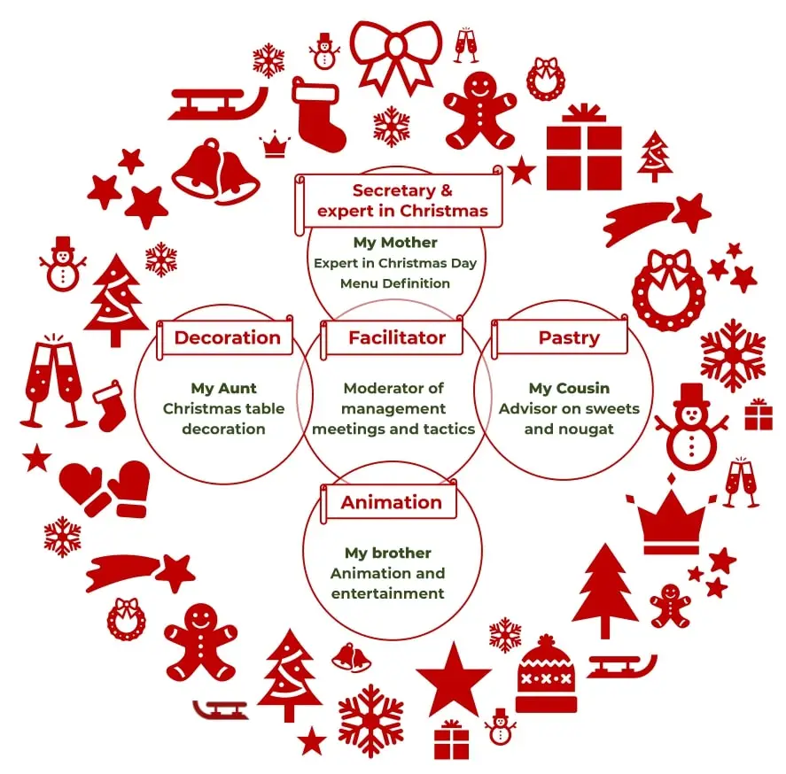 To do this, we formed the 'Christmas committee' circle. The objective of this circle was to define the design of Christmas Day and inside, we included several family members with their roles well defined.