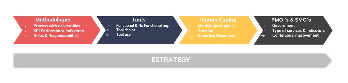 It will be given by the investment in various methodologies of Programme Management, Services, Tools and Management Offices (PMO's and SMO's), which guarantee a homogeneous execution of the portfolio initiatives.