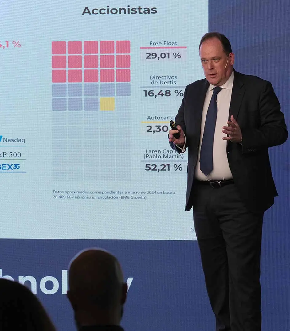 The transaction has been framed as strategic and contributes to provide even more stability to the shareholding. It also demonstrates the market's confidence in Izertis' growth trajectory, with an average annual growth rate of 20% in its 27-year history. It is also an important endorsement of its medium-term business strategy, with a 2027 Strategic Plan that foresees reaching 250 million euros in revenues and 33 million euros in EBITDA by the end of that year.