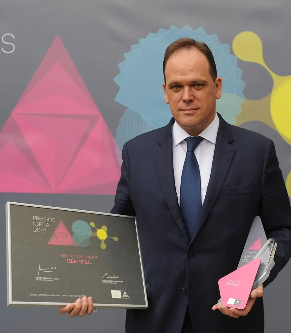 El pasado 14 de junio, Izertis recibió el premio IDEPA 2019 dedicado al crecimiento empresarial. El jurado del Instituto de Desarrollo Económico del Principado, organismo encargado de otorgar el galardón, destacó de Izertis en primer lugar, su capacidad de transformación, al pasar de ser un proveedor de equipamiento informático en sus inicios a convertirse a día de hoy en una ingeniería del conocimiento con más de 800 empleados.