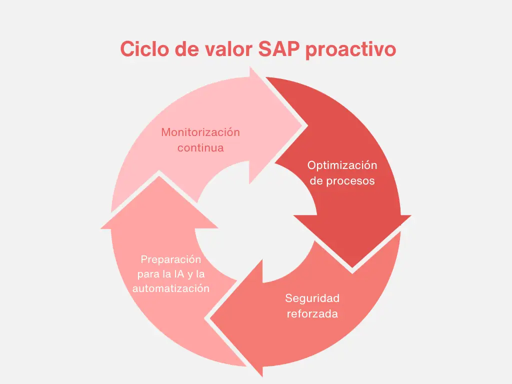 En muchos proyectos de SAP, se observa la misma realidad: empresas que se limitan a reaccionar ante fallas, en un ciclo de tickets, correcciones urgentes e interrupciones que consumen recursos. Pero la experiencia muestra que la gran diferencia ocurre cuando se pasa de un enfoque reactivo a la prevención y la optimización.
