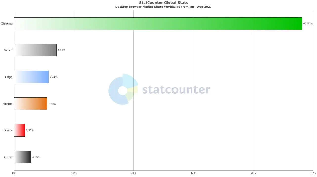 Si la aplicación bajo pruebas es web, observaremos los últimos estudios disponibles en internet sobre las estadísticas de uso de los navegadores más utilizados en el mercado. Podemos asegurar que con los 4 más comunes (Chrome, Firefox, Safari y Edge) estaremos cubriendo más del 90% de los usuarios potenciales de nuestras aplicaciones web: