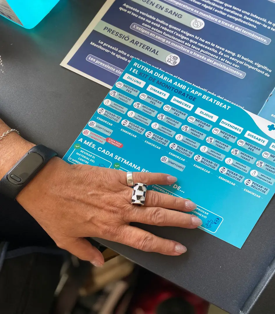 Una app (BeatBeat by Plat4TIQUE App) que no solo monitoriza el estado de salud del paciente, sino que también le proporciona un conjunto de herramientas para empoderarle a lo largo de su viaje asistencial. La BeatBeat App, junto con el KIT de monitorización correspondiente, pretende apoyar y capacitar a los pacientes para educarles en la gestión de sus signos y síntomas, hábitos de vida saludables e interacciones con los distintos niveles asistenciales.