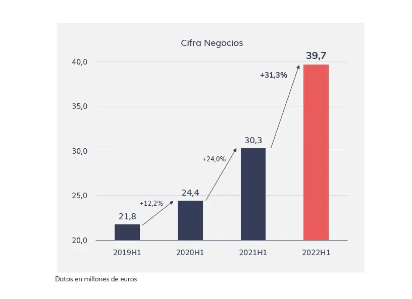 El ascenso de este dato viene siendo progresivo semestre tras semestre, no solo en términos absolutos, sino también en porcentuales, hasta situarse en el 31,3% en la primera mitad de 2022, muy por encima de las cifras obtenidas en 2021 y 2020, cuando el crecimiento fue del 24,0% y 12,2%, respectivamente.