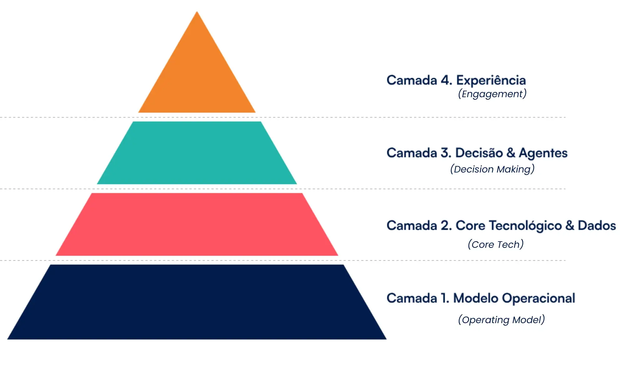 A abordagem está organizada em quatro camadas que procuram evitar saltos improvisados: cada nível apoia-se no anterior e permite avançar com coerência. São elas: Produtividade, Infraestrutura, Eficiência e Experiência do utilizador.