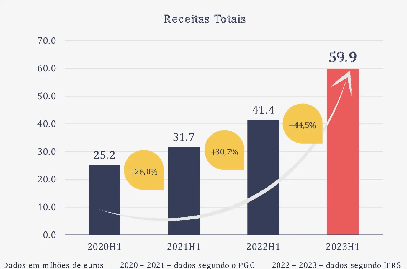 A multinacional tecnológica Izertis fechou o primeiro semestre do ano com receitas totais de 59,9 milhões de euros, uma melhoria de 45% em relação ao mesmo período do ano passado. Estes números confirmam a aceleração do crescimento registada nos últimos exercícios, quando os aumentos foram de 26% em 2021 e 31% em 2022.
